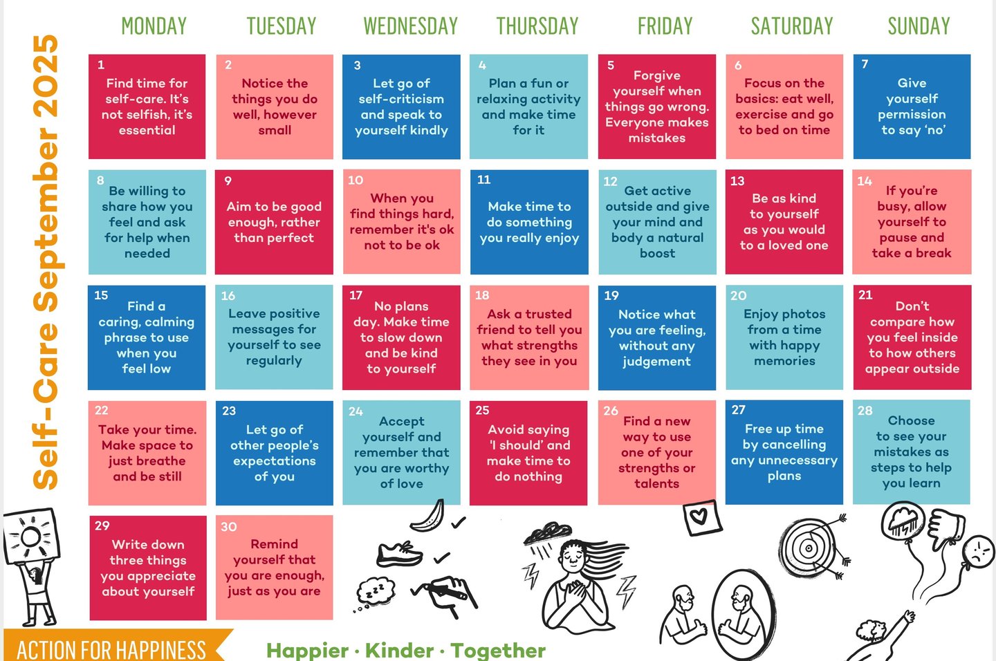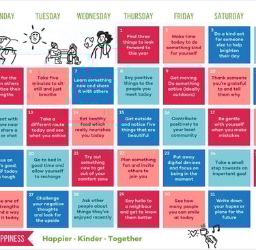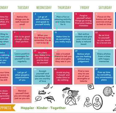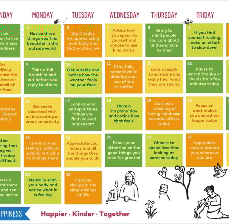 Calendar provided courtesy of Action for Happiness. Visit their website to sign up for free coaching