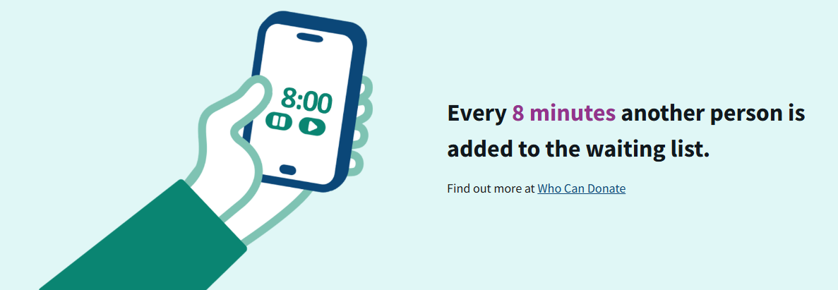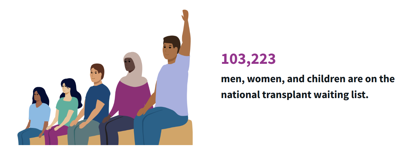 The Statistics on the need for organ donation are staggering and consistent. National Donate Life Month focuses national attention on the need and importance of organ, eye and tissue donation. It emphasizes the importance of registering your decision to be a donor, honoring deceased and living donors, and celebrating the lives they saved. It might be your desire to BE a donor but if you are not registered, that desire cannot be honored. Through the generosity of donors and donor families saving lives through transplant is possible. I speak from personal experience. Without a living donor's gift, I would not be here.