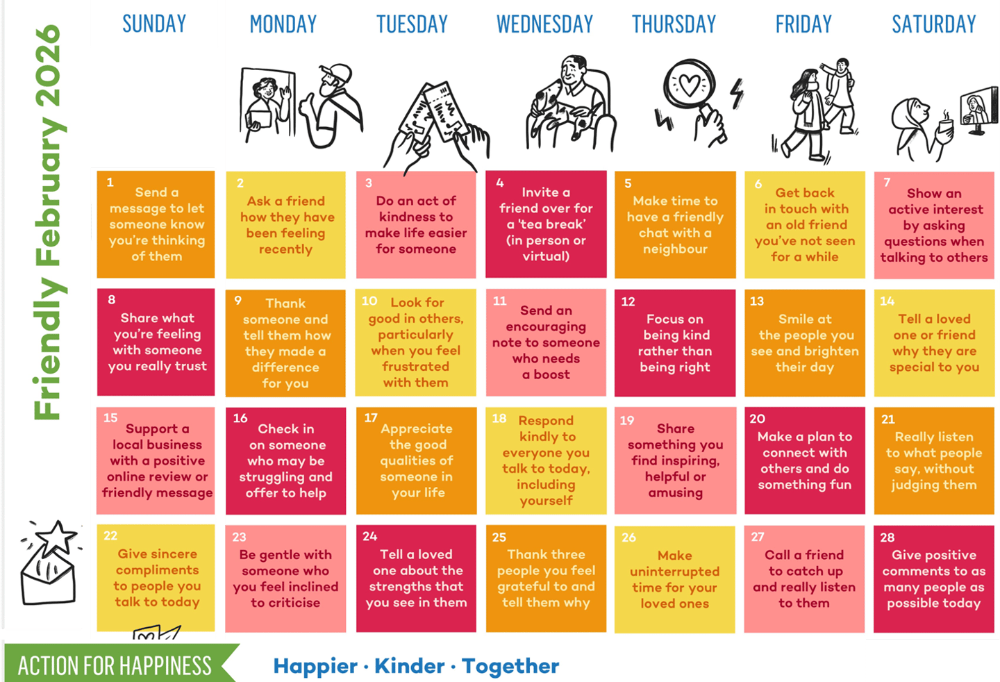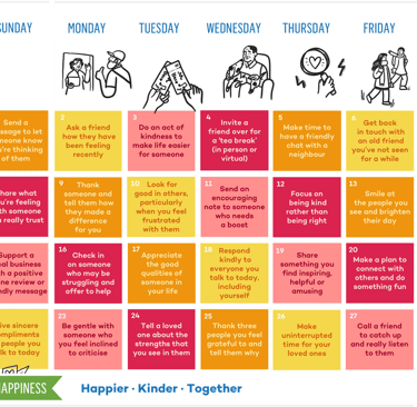 Calendar provided courtesy of Action for Happiness. Visit their website to sign up for free coaching